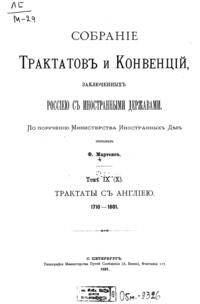 Собрание Трактатов и Конвенций, заключенных Россией с иностранными державами. Том IX (X). Трактаты с Англией.