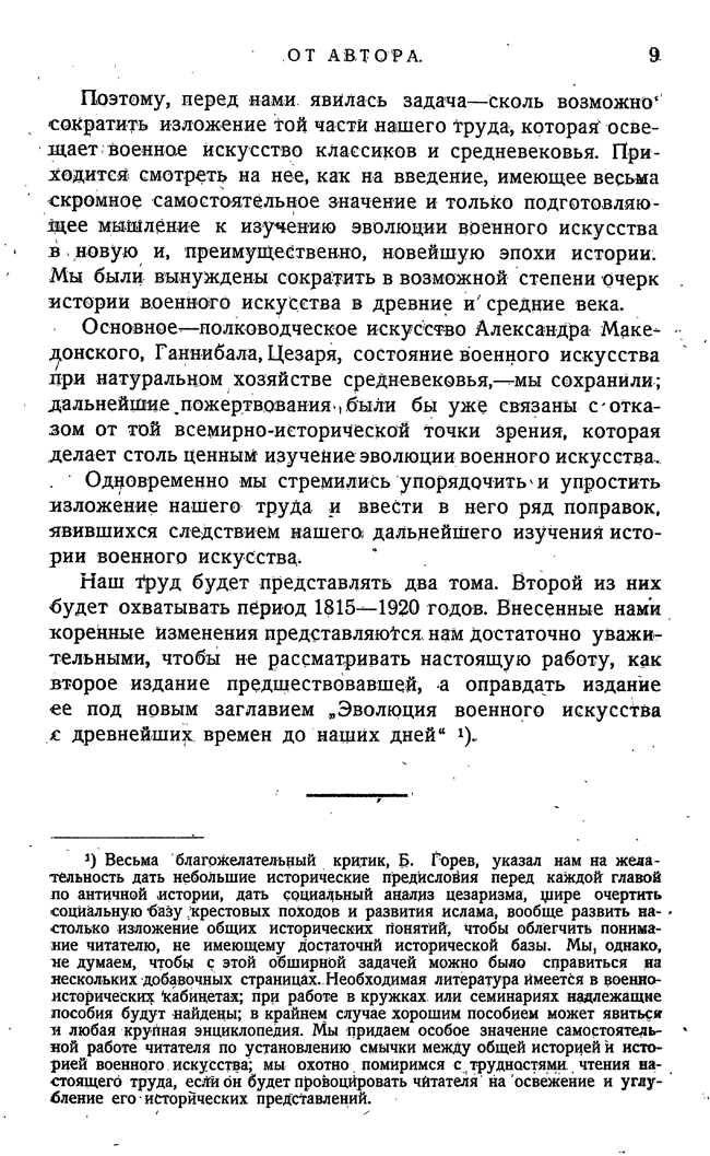 Работа рассматривает полководческое искусство классиков и средневековья, а также затрагивает вопросы истории военного искусства в России.