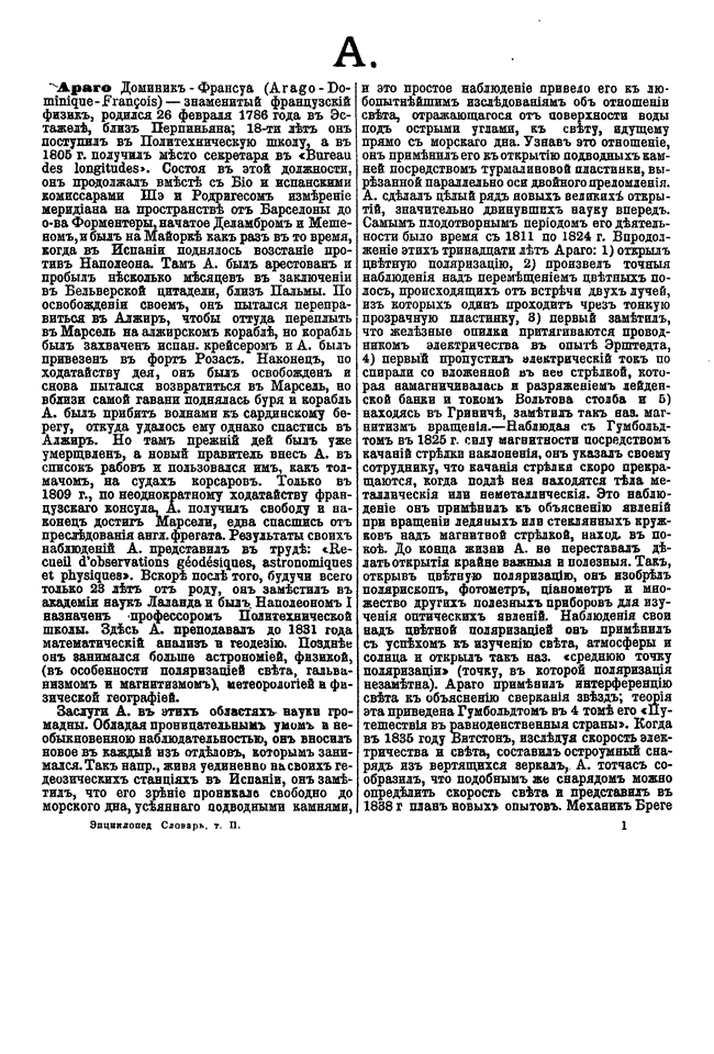 Самая крупная дореволюционная русская универсальная энциклопедия, выпущенная акционерным издательским обществом «Ф. А. Брокгауз — И. А. Ефрон». Состоит из 86 томов (82 основных и 4 дополнительных), выходивших в течение 1890-1907 годов. Первые 8 томов (до буквы «В») вышли под общей редакцией профессора И. Е. Андреевского и в основном содержали переводы на русский язык статей знаменитой немецкой энциклопедии Брокгауза «Konversations Lexikon».