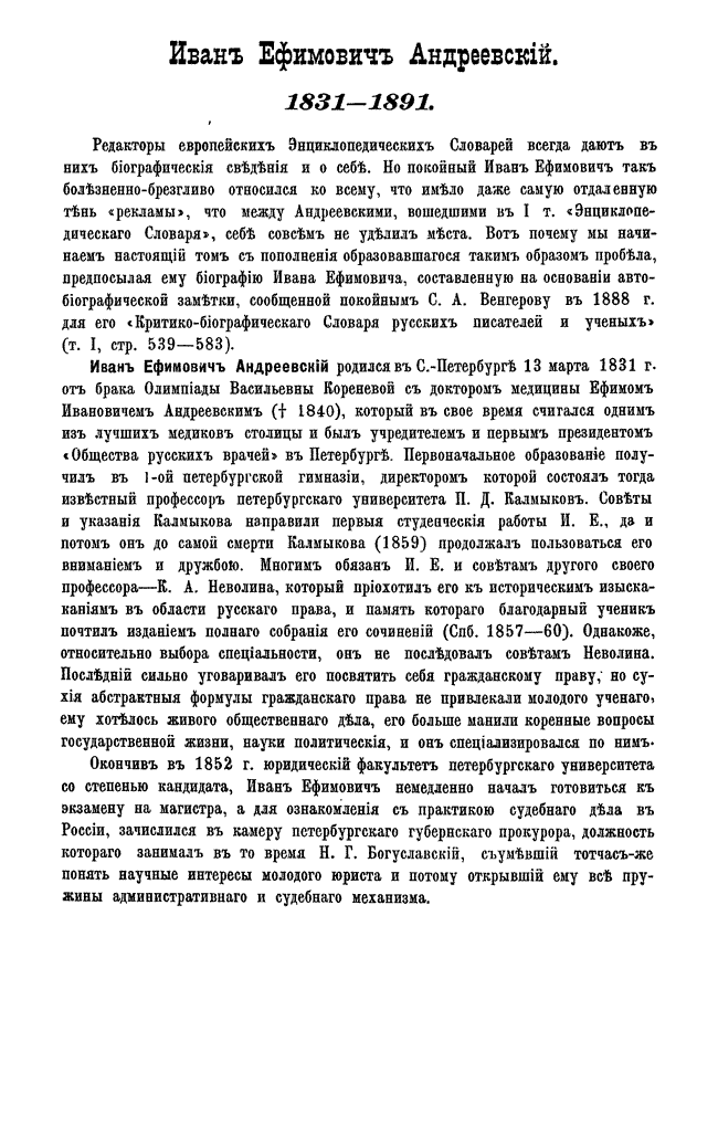 Самая крупная дореволюционная русская универсальная энциклопедия, выпущенная акционерным издательским обществом «Ф. А. Брокгауз — И. А. Ефрон». Состоит из 86 томов (82 основных и 4 дополнительных), выходивших в течение 1890-1907 годов. Первые 8 томов (до буквы «В») вышли под общей редакцией профессора И. Е. Андреевского и в основном содержали переводы на русский язык статей знаменитой немецкой энциклопедии Брокгауза «Konversations Lexikon».