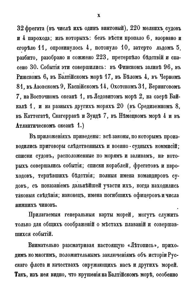 Книга содержит ряд приложений, где приведены все законы, по которым производились приговоры следственных и военно-судных комиссий, полный перечень пострадавших судов с именами членов экипажа и генеральные карты морей.