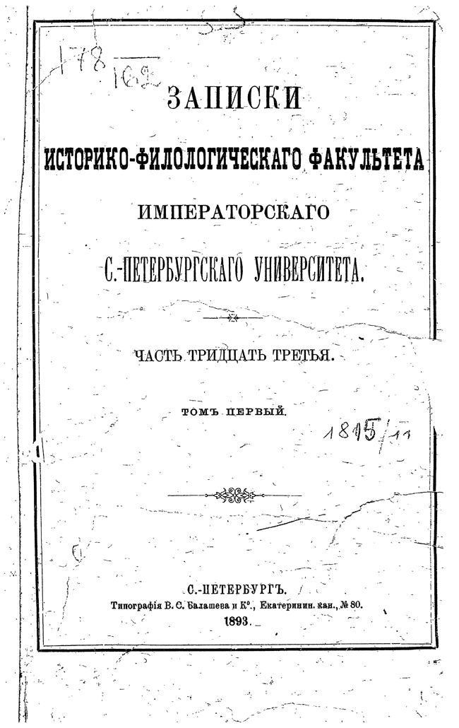 Записки историко-филологического факультета Императорского СПб. университета выходят с 1876 г.