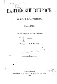 Записки историко-филологического факультета Императорского С.-Петербургского университета. Балтийский вопрос в XVI и XVII столетиях (1544-1648)