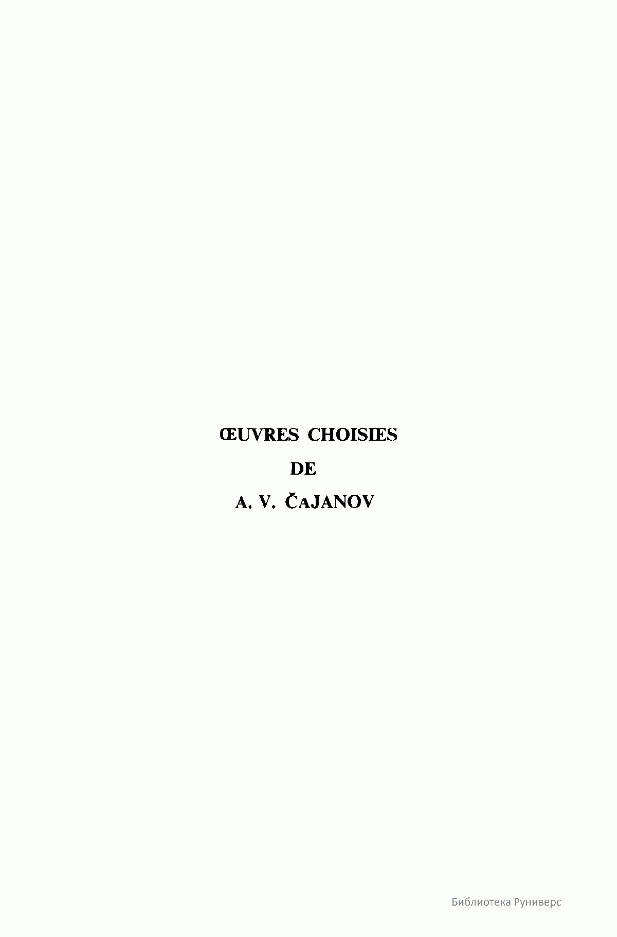 Oeuvres Choisies de A.V. Cajanov. Vol 2
