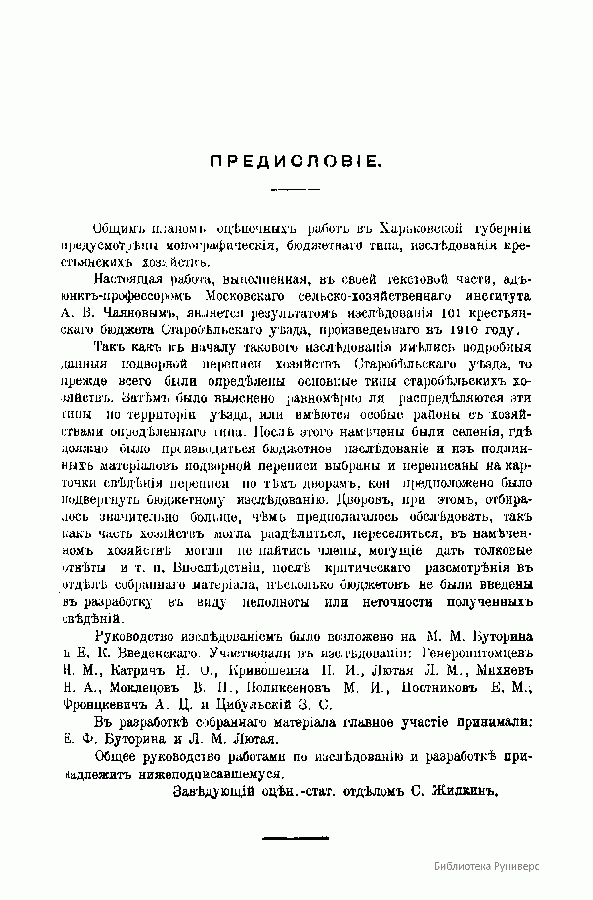 В 1911 г. он дает классическое определение цели крестьянского хозяйства: «Задачей крестьянского трудового хозяйства является доставление средств существования хозяйствующей семье путем наиболее полного использования имеющихся в ее распоряжении средств производства и рабочей силы.»
