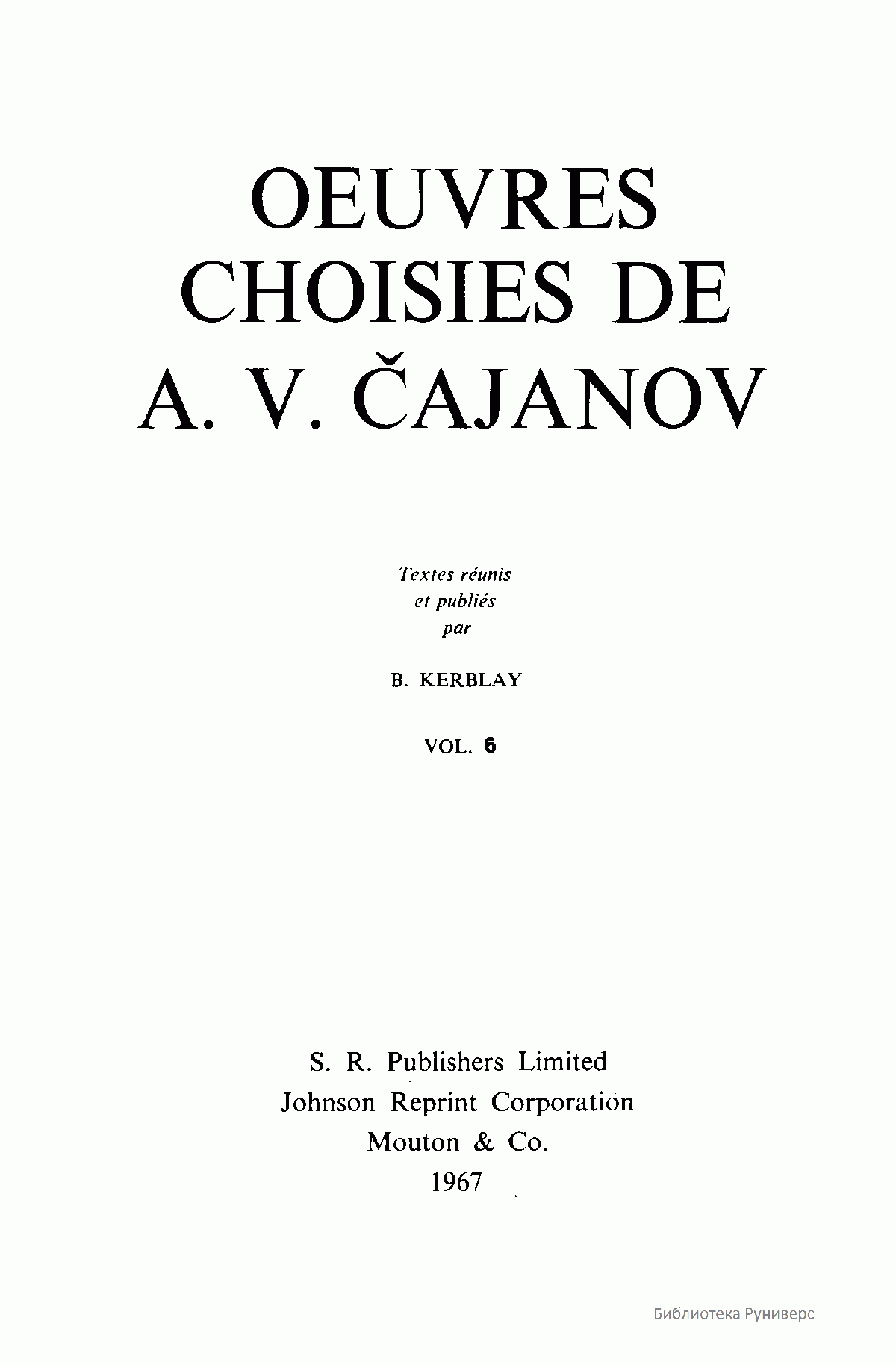 Oeuvres Choisies de A.V. Cajanov. Vol 6