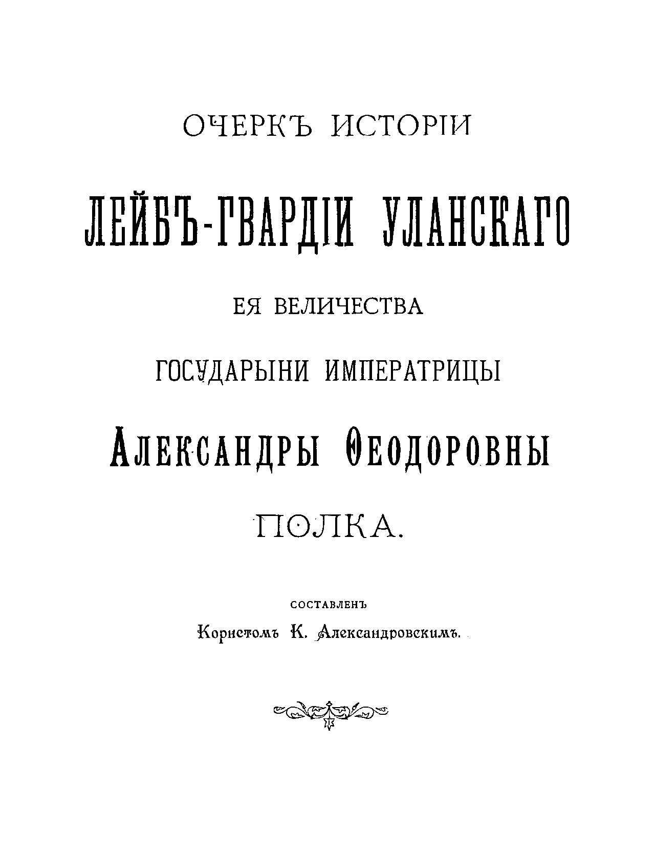 Очеркъ исторiи Лейбъ-гвардiи Уланскаго Ея Величества Государыни Императрицы Александры ѳоедоровны полка