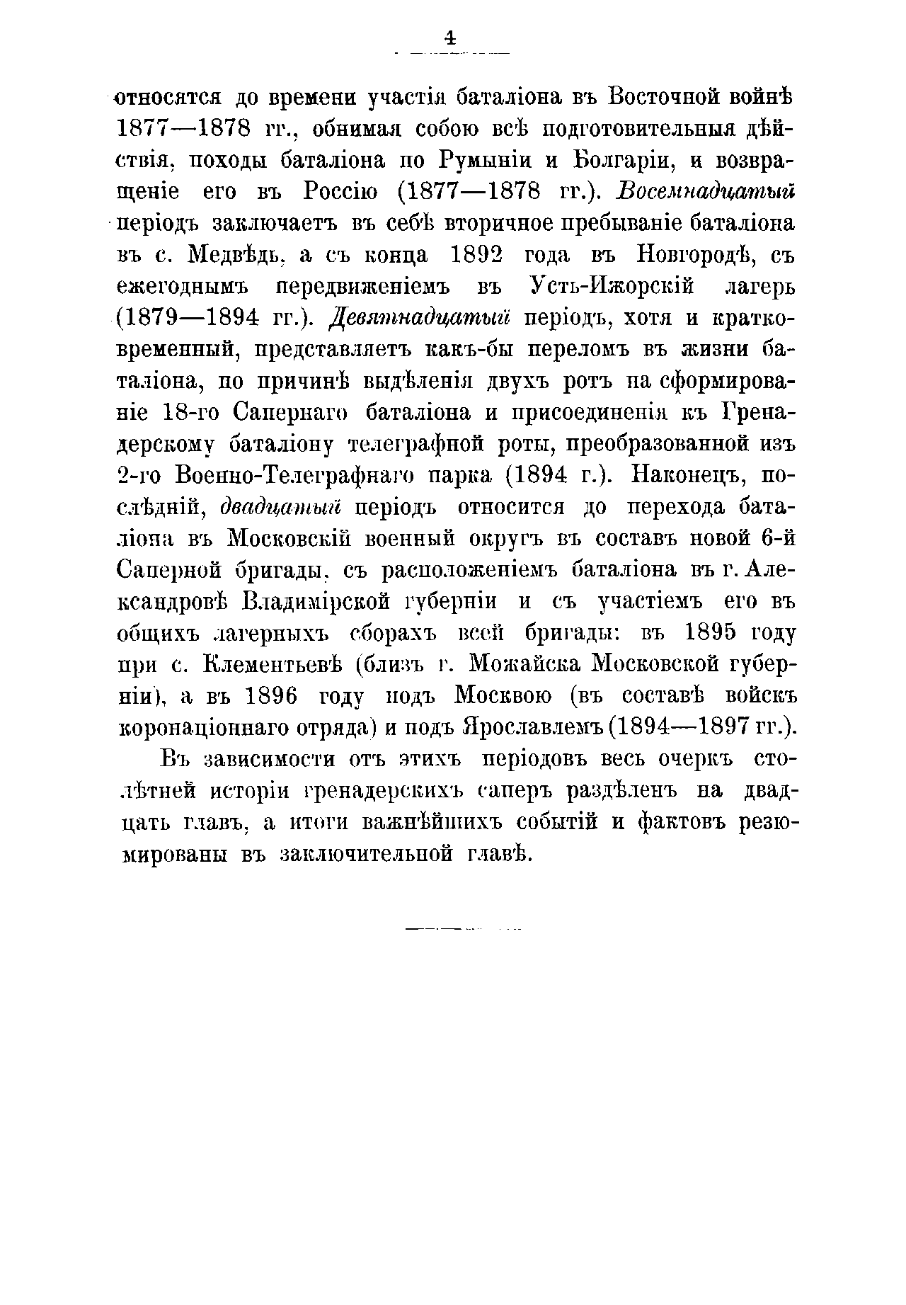 Документальное описание боевых действий Пионерного полка и Гренадерского саперного батальона, знаменательных исторических событий, связанных с ними, за период 1797 – 1897 годов. В качестве дополнений включены более поздние работы разных авторов, освещающих историю саперов до середины первого десятилетия XX века