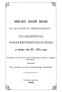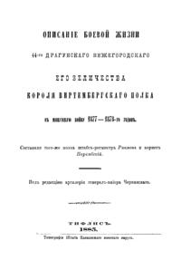 Описанiе боевой жизни 44-го Драгунскаго Нижегородскаго Его Величества Короля Виртембергскаго полка въ минувшую войну 1877-1878-го годовъ