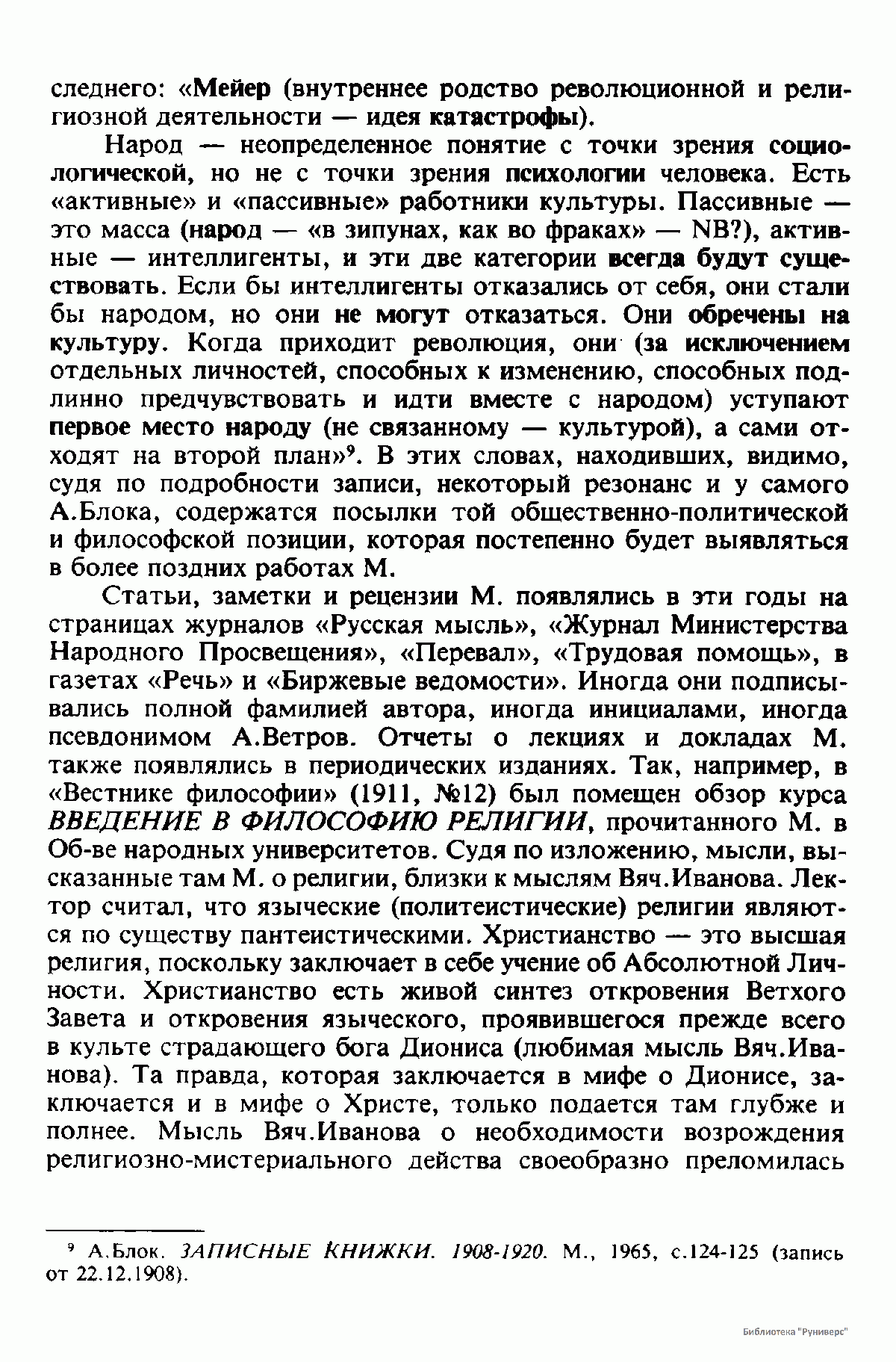 Академик Дмитрий Сергеевич Лихачев (1906 - 1999) в своих "Воспоминаниях" отметил, что "Философские сочинения" А.А.Мейера, вышедшие в Париже в 1982 г., "производят впечатление написанных как бы со знанием работ Леви-Стросса, К. Юнга, Б. Малиновского и А. Ф. Лосева, вышедших позднее, — настолько они предвосхитили их идеи". В основе этого сборника работ Александра Александровича Мейера (1875-1939) рукописи, появляющиеся после ареста в 1928 г. по обвинению в создании контрреволюционной организации "Воскресение" (а также за участии в ряде других кружков). Опубликован сборник был благодаря стараниям А.И. Добкина. Особое место в собрании этих тестов занимают "Размышления при чтении Фауста" (1936). "Фауста" А. А. Мейер перечитывал - вспоминал Д.С.Лихачев, - по имевшемуся на Соловках переводу Холодовского, но многое из его текста помнил наизусть по-немецки: это было его любимое произведение". Данный текст является примером философского толкования поэтического произведения.