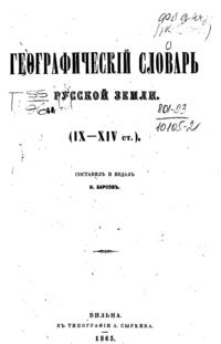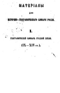 Автор посвящает свой труд географическим условиям исторической жизни русского народа. В русских летописях и актах он кропотливо собирает и систематизирует данные по географии Древней Руси. Составитель ручается, что в книге отмечена каждая местность Русской земли в пределах до XIV столетия.