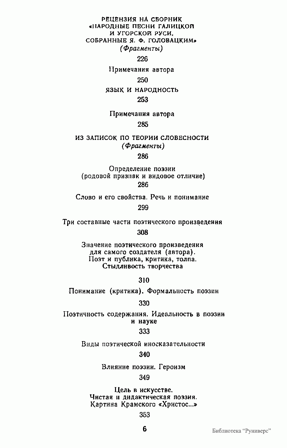 В книге впервые собраны работы выдающегося мыслителя XIX века А. А. Потебни (1835-1891), эстетические идеи которого оказали большое влияние на развитие теории и психологии художественного творчества. Существенные проблемы искусства рассматриваются Потебней в таких трудах, как «Мысль и язык», «Из записок по теории словесности», в статьях и высказываниях о народном творчестве и произведениях художников слова.