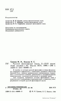 Русская философская мысль X-XVII веков
