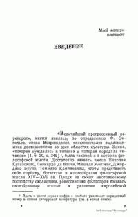 В книге анализируются философские и социологические взгляды Данте, Ф. Петрарки, Николая из Кузы, Леонардо да Винчи, Н. Коперника, М. Монтеня, Дж. Бруно, Т. Кампанеллы, Г. Галилея и др. Работа основана на многочисленных источниках, прежде всего на подлинных текстах философов XIV—XVI вв., по большей части не переводившихся на русский язык; она содержит аргументированную критику буржуазно-идеалистических и клерикальных истолкований философского наследия эпохи Возрождения.