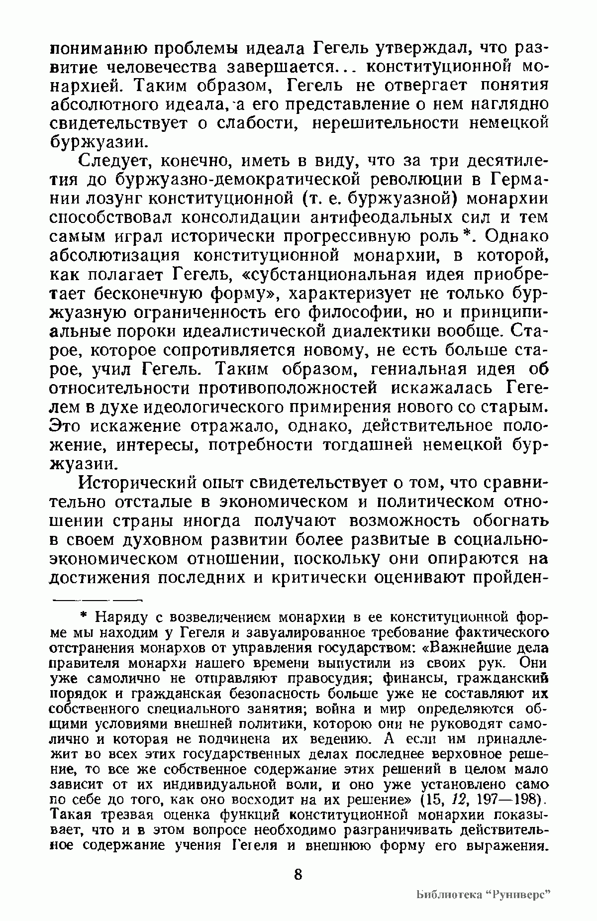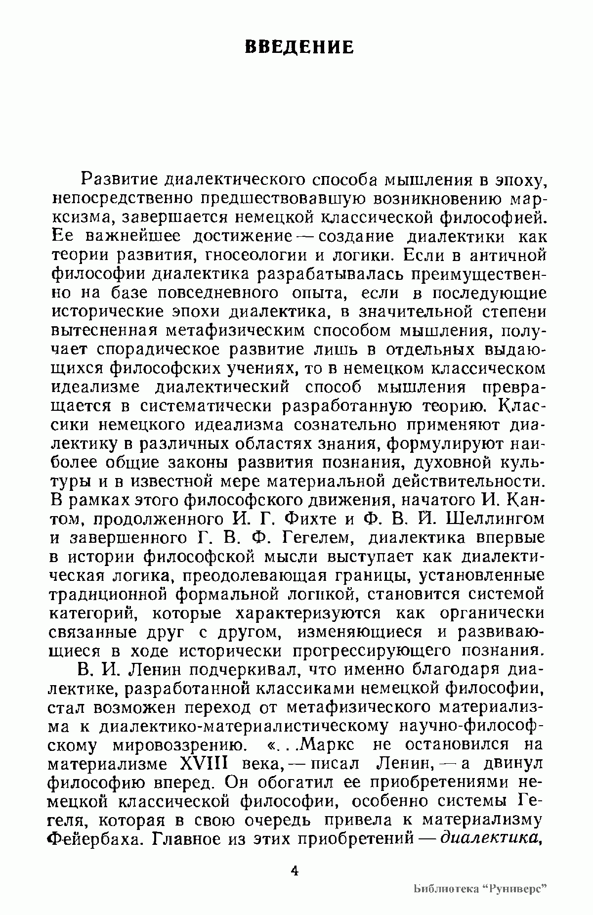 В книге впервые в советской научной литературе представлено целостное рассмотрение диалектического метода классиков немецкой идеалистической философии. Продолжая марксистские традиции исследования диалектики Гегеля, эта коллективная монография освещает также недостаточно изученные с точки зрения истории диалектики учения Канта, Фихте и Шеллинга. Она дополняет опубликованные ранее работы по истории домарксистской диалектики.