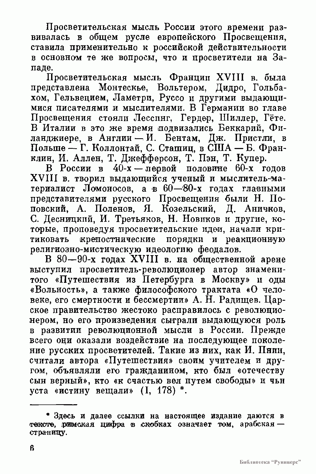 Издание посвящено представлению развития философской и общественно-политической мысли в России в период после появления "Путешествия из Петербурга в Москву" А.Н.Радищева и до работ декабристов. Настоящее издание до известной степени призвано было познакомит советского читателя с совокупностью произведений русских просветителей конца XVIII - начала XIX века. В первый том вошли труды П.И. Челищева, В.В. Пассека, А.Ф. Бестужева, И.П. Пнина, В.Ф. Малиновского, А.С. Кайсарова. Вступительная статья И.Я. Щипанова. Во второй том издания вошли труды А.С. Лубкина, Т.Ф. Осиповского, А.П. Куницына. В приложении публикуется "Письмо о пользе учения к Василию Сергеевичу Шереметьеву" В.П. Колычева.