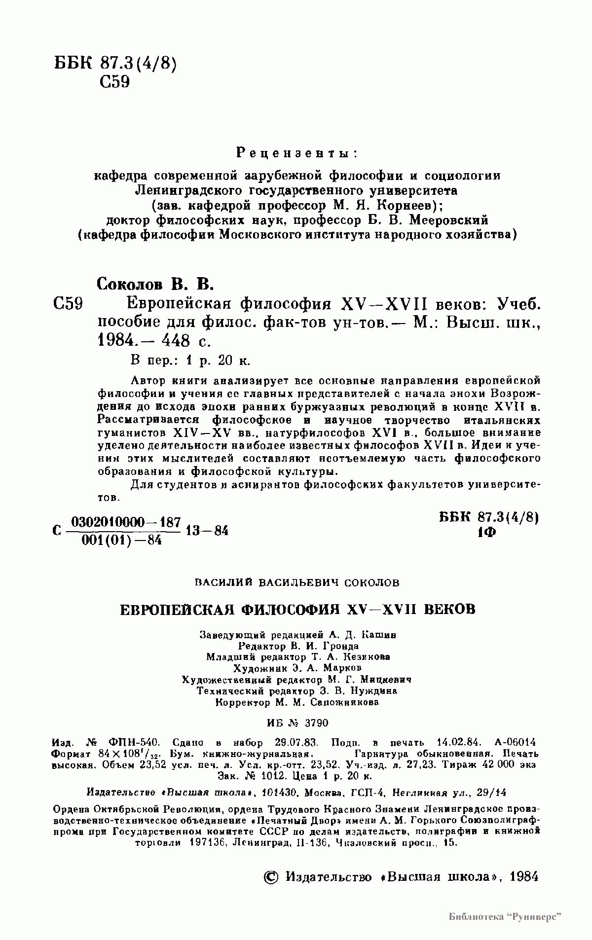Автор книги анализирует все основные направления европейской философии и учения ее главных представителей с начала эпохи Возрождения до всхода эпохи ранних буржуазных революций в конце XVII в. Рассматривается философское и научное творчество итальянских гуманистов XIV —XV вв., натурфилософов XVI в., большое внимание уделено деятельности наиболее известных философов XVII в. Идеи и учения этих мыслителей составляют неотъемлемую часть философского образования и философской культуры.