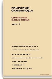 Первый том включает произведения Г. Сковороды, написанные в 1750—1775 гг. Порядок размещения произведений позволяет проследить эволюцию философских взглядов Г. С. Сковороды. Том открывается сборником стихов «Сад божественных песен». Из «Сада» выбраны песни, представляющие ценность в философском отношении. «Басни Харьковские» и последующие произведения, среди которых и два недавно найденных — «Беседа 1-я» и «Беседа 2-я», характеризуют мыслителя как философа, поставившего в центре своей системы этико-гуманистическую концепцию. Том завершает «Разговор, называемый Алфавит, или Букварь мира». В состав второго тома вошли философские сочинения Г. Сковороды, созданные им в 70—90-х годах XVIII в.: трактаты "Икона Алкивиадская" и "Жена Лотова", диалоги «Брань архистратига Михаила со Сатаною», «Пря беса со Варсавою» и «Потоп змиин» и две притчи — «Благодарный Еродий» и «Убогий Жаворонок». Помимо этого в том включены эпистолярное наследие философа, составляющее более ста двадцати писем, его филологические исследования и переводы. Заключается том биографией Сковороды, написанной его другом и учеником М. Ковалинским, которая представляет собой один из важнейших источников изучения философии и творчества Г. Сковороды.