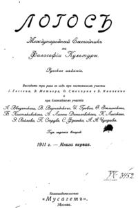вышли из журнала. В русской версии «Логоса» участвовали и иностранные философы: Г. Зиммель, Г. Риккерт, Р. Кронер, Г. Вёльфлин, B. Виндельбанд, Н. Гартман, П. Наторп, Б. Кроче, Э. Бутру.