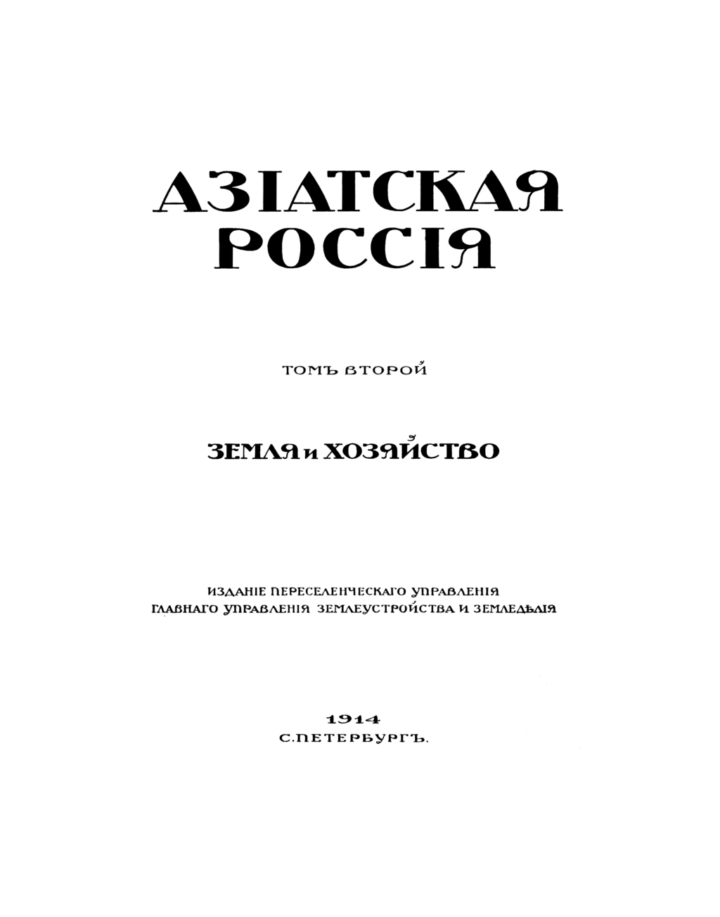 Завоевание Азиатской России закончилось присоединением Закаспийской области в последней четверти XIX века. Но в значительных размерах заселение Сибири и степных областей стало совершаться в начале XX. Толчком к этому послужило начало постройки Сибирской железной дороги в 1893 в предпоследний год царствования Александра III. Начиная с 1894 за двадцать лет в Азиатской России прочно осело свыше трех с половиной миллионов русских людей, которые вместе с естественным приростом русского сибирского населения дали к 1914 цифру в десять миллионов. В настоящих очерках, которые исполнены по мысли и указаниям главноуправляющего землеустройством и земледелием статс-секретаря А. В. Кривошеина и призваны удовлетворить возросший интерес к жизни азиатских окраин России, читатель найдет сведения о постепенном переселении русских людей за Урал. В первых двух томах, сопровождаемых рисунками, собраны некоторые общие, представляющие наибольший интерес сведения. Третий том содержит приложения к первым двум томам. Указанные тома являются как бы подробным объяснительным текстом к атласу, представленному в четвертом томе.