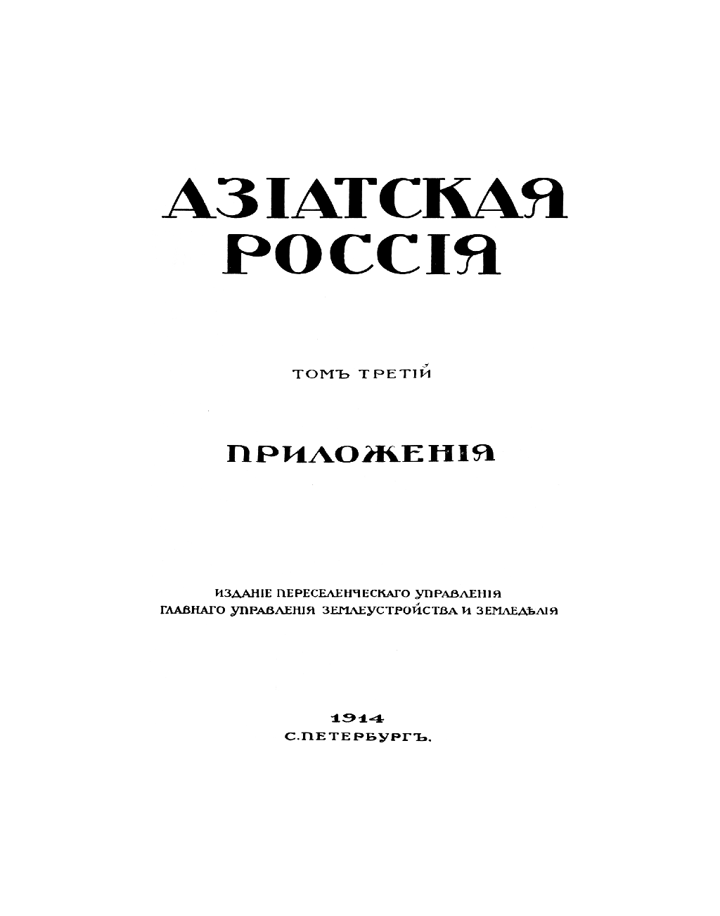 Азiатская Россiя. Томъ третiй. Приложенiя