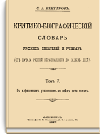 В крупнейшем библиографическом труде «Критико-биографический словарь русских писателей и ученых (от начала русской образованности до наших дней)» известный русский историк литературы и библиографии Семен Афанасьевич Венгеров (1855–1920) подробно осветил деятельность писателей и ученых, дал списки произведений, а также литературы о них, причем учтены не только крупные, но и малые представители русской литературы и науки. Словарь содержит статьи и документальные справки более чем о 2000 писателей, а также несколько сотен автобиографических сообщений.