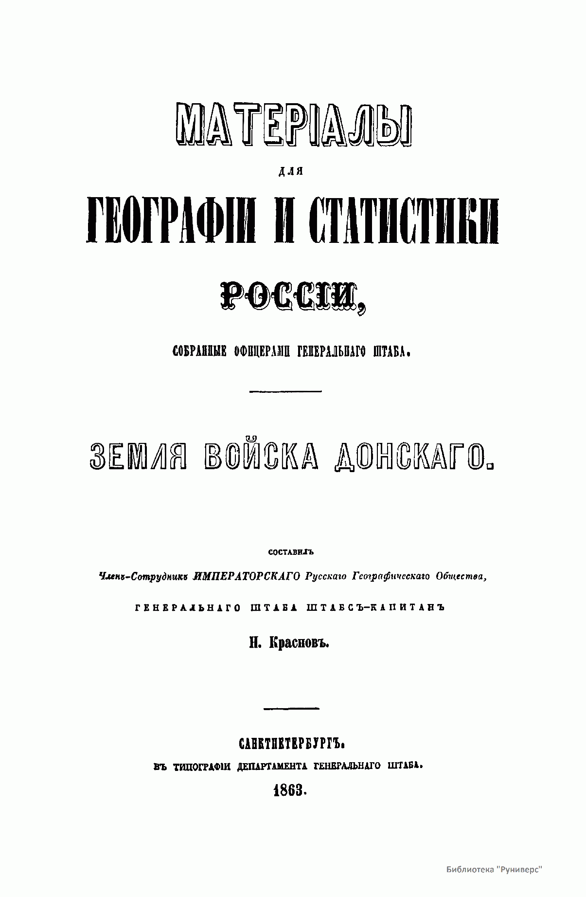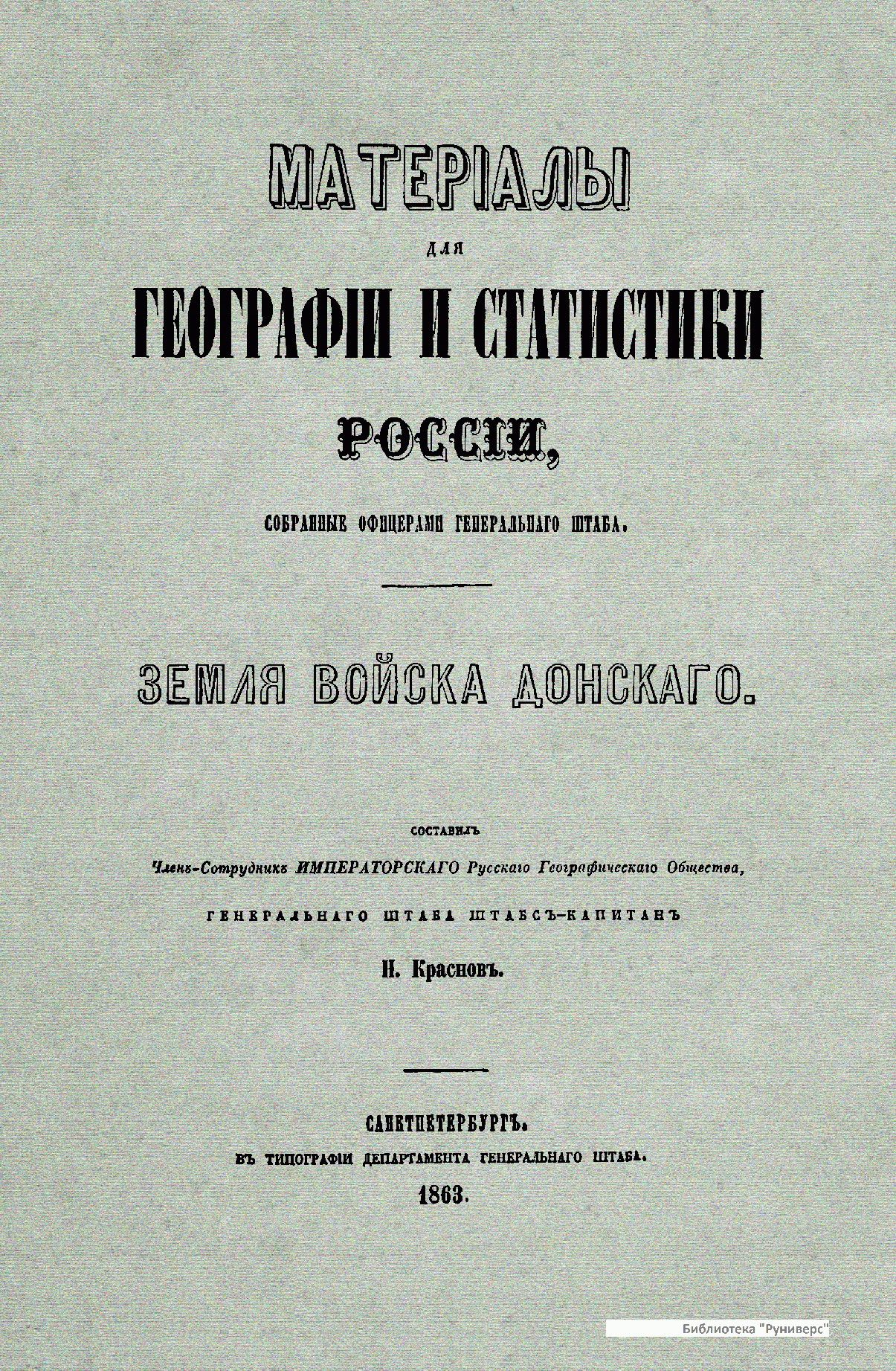 Матерiалы для географiи и статистики Россiи, собранные офицерами Генеральнаго штаба. Земля войска Донскаго