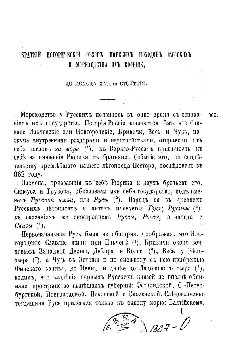 Краткий исторический обзор морских походов русских и мореходства их вообще до исхода XVII столетия