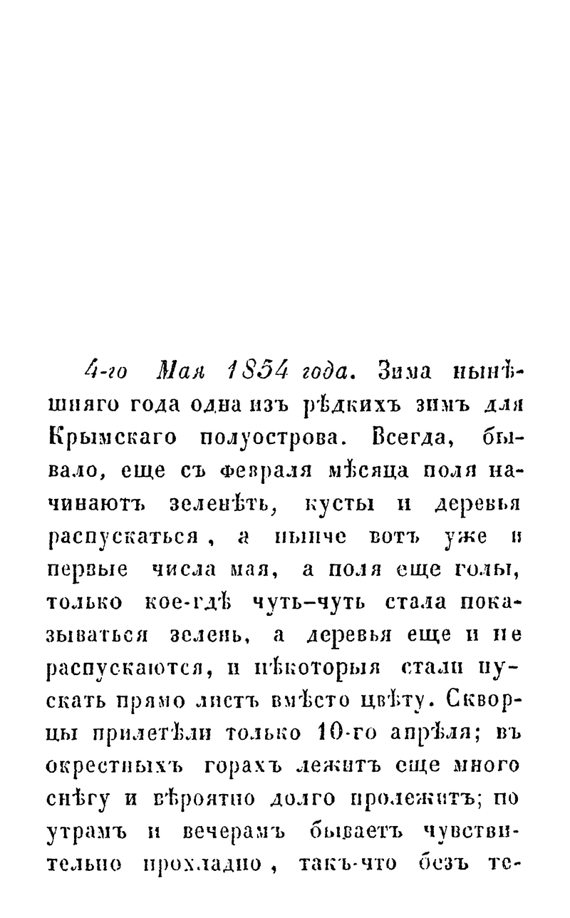 Все, кто побывал в осаждённом Севастополе во время Крымской войны и оставил свои воспоминания, вынесли общее убеждение. Это убеждение в невозможности не только взять Севастополь, но и поколебать где бы то ни было силу русского народа. Защитники Севастополя в тяжёлые времена «не упали, а возвысились духом и с наслаждением готовились к смерти», так как твёрдо знали, за что отдают свою жизнь. Автор этих писем не является исключением. Он был не участником войны, а наблюдателем, частным лицом. Его адресат неизвестен. Описание весны 54-го года в Крыму, городской пейзаж, бытовые и военные сцены, рассказы пленных и свидетелей военных действий, впечатления и размышления автора позволяют читателю не только узнать, но и пережить события тех далёких дней.