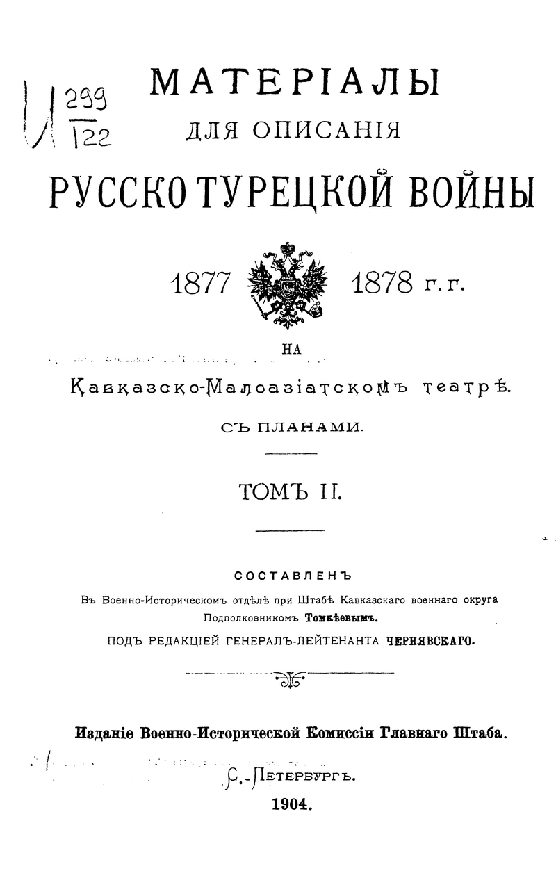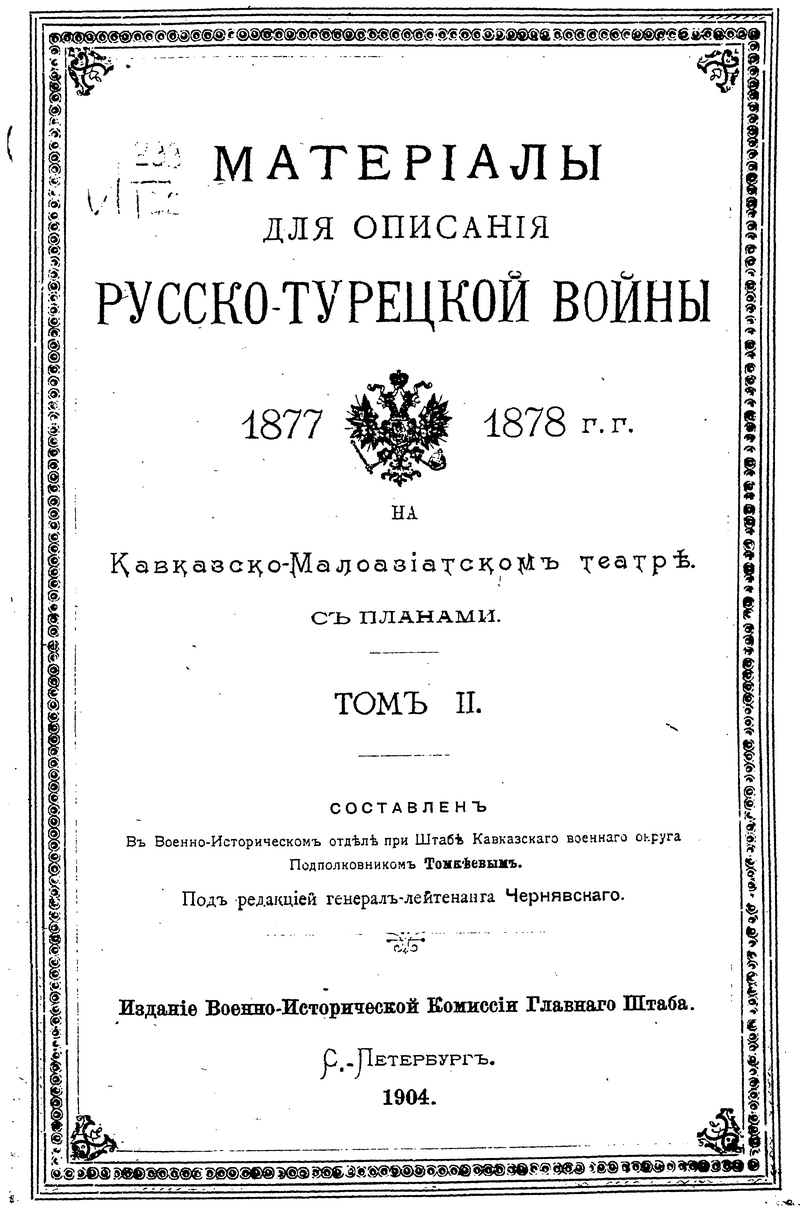 Материалы для описания русско-турецкой войны 1877-1878 гг. на Кавказско-Малоазиатском театре. Том II