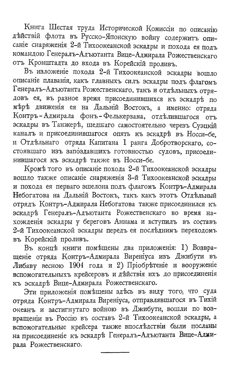 Данное многотомное военно-историческое исследование было подготовлено и издано в результате кропотливой и длительной деятельности. Исторической комиссии по описанию действий российского императорского флота и его личного состава в годы русско-японской войны 1904-1905 гг., специально созданной при Морском генеральном штабе для изучения трагических последствий этой войны для России и её флота.