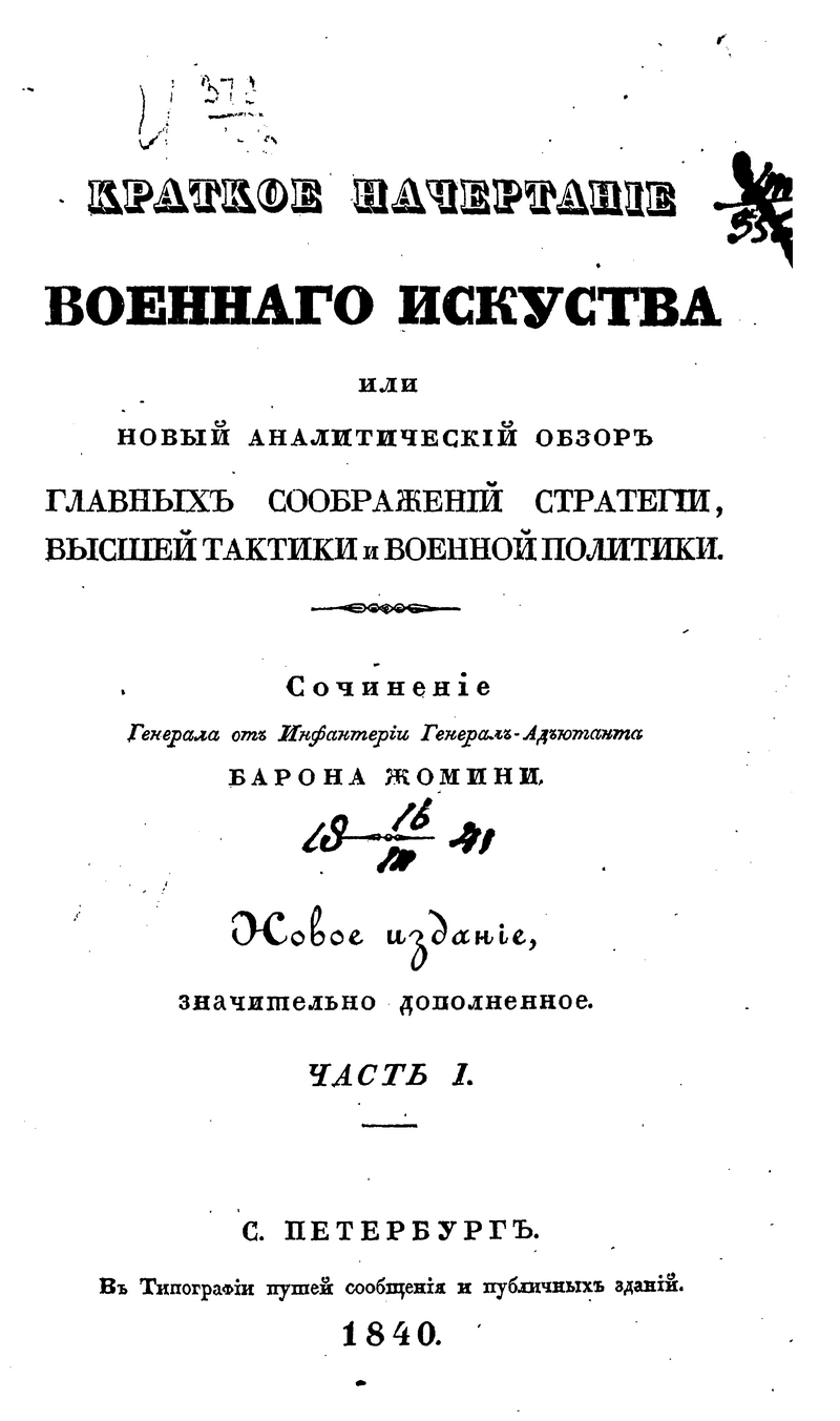 Краткое начертание военного искусства или новый аналитический обзор главных соображений стратегии, высшей тактики и военной политики