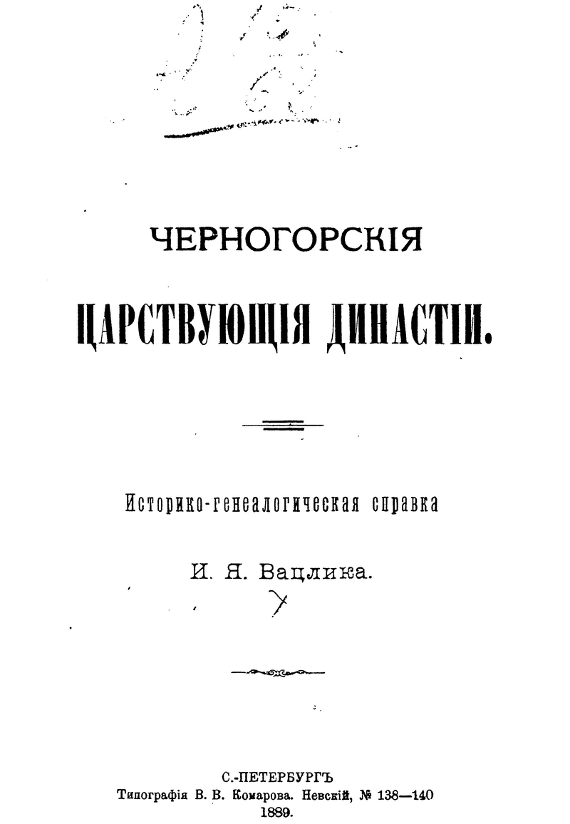 Черногорскiя царствующiя династiи