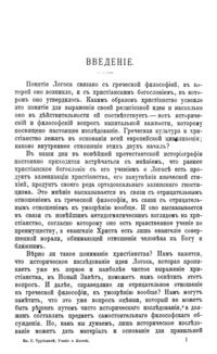 Докторская диссертация С. Н. Трубецкого посвящена понятию «логоса», возникшему в греческой философии и утвердившемуся в христианском богословии. Автор ставит цель выяснить, каким образом христианство, которое признает разум как объективное всемирное и сверхмирное начало, усвоило это понятие для выражения своей религиозной идеи и насколько оно в действительности ей соответствует.