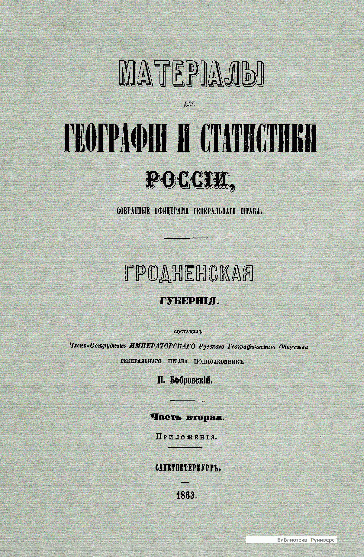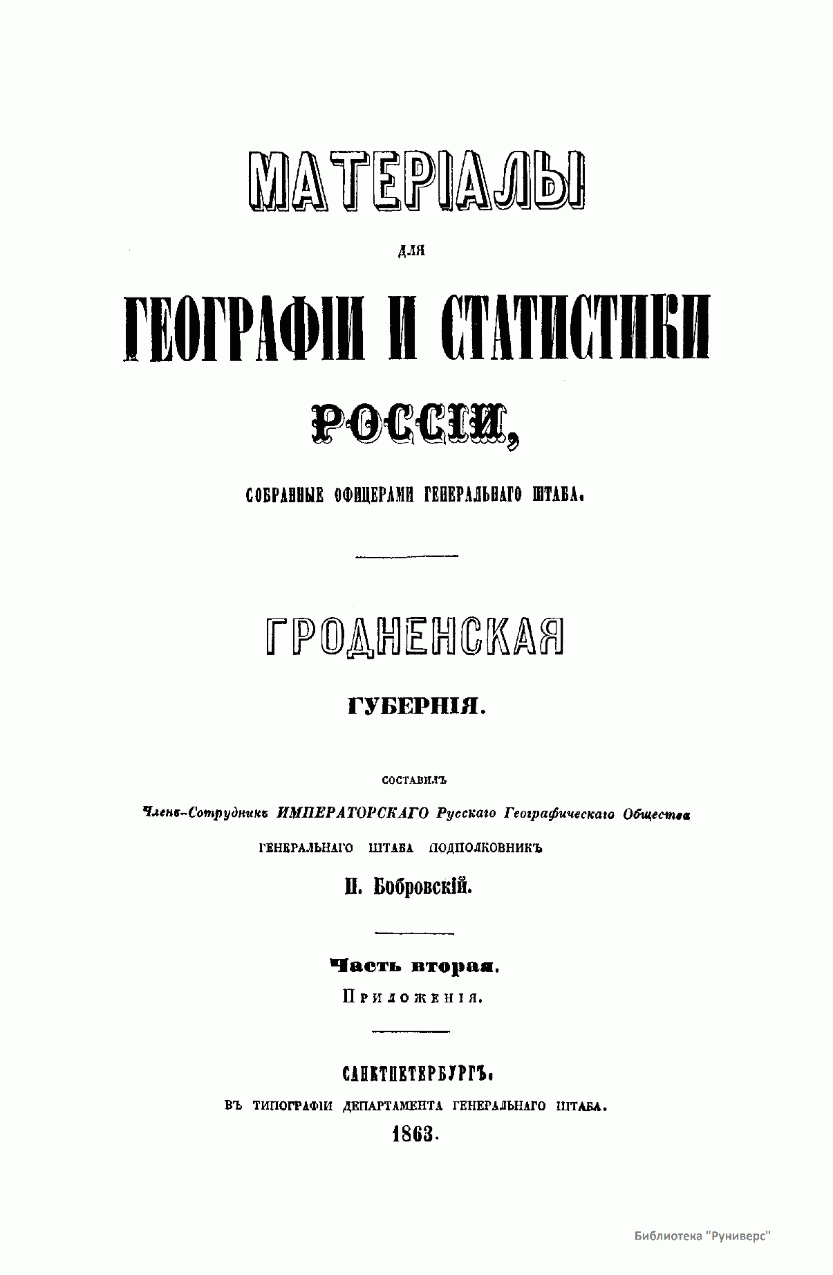 Материалы для географии и статистики России, собранные офицерами Генерального штаба. Гродненская губерния. Часть 2. Приложения