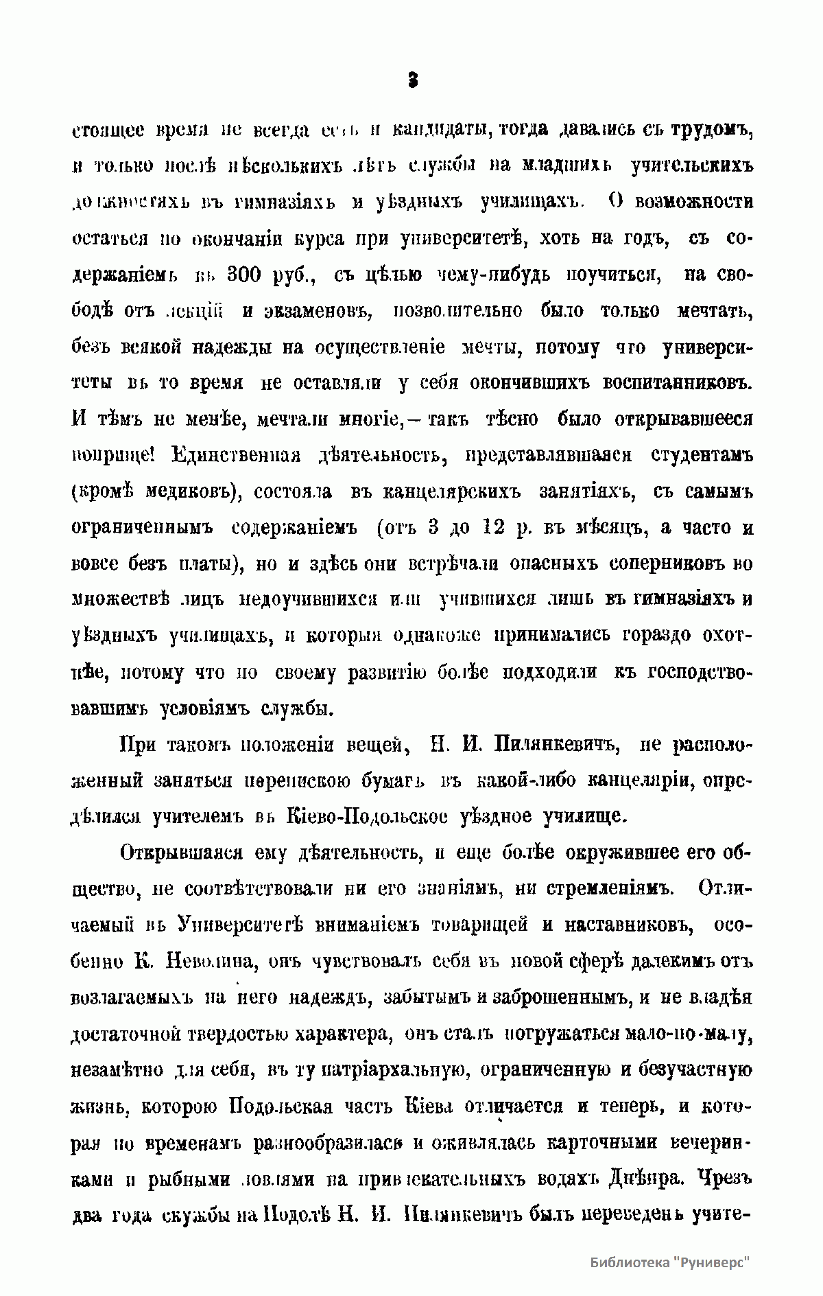 Издавая ныне труд Н.И. Пилянкевича, мы руководствовались многими соображениями: во-первых, мы думаем, что не смотря на значительное число лет, отделяющих его от настоящего времени, он может служить и теперь некоторым пособием и руководством для студентов-юристов, изучающих историю философии права, тем более что мы совершенно бедны сочинениями по этому предмету на русском языке; со времени истории философии права, представленной Неволиным в его Энциклопедии (1839 г.), приобретена нами всего одна книга: Очерк (весьма краткий) истории философии права Гейера (перевод с немецкого 1866 г.). Во- вторых, труд этот, совершенный в тяжелый период нашего высшего просвещения, может служить доказательством, что и тогда в наших университетах, при всем преобладании лишь формального исполнения своего долга, были лица, делавшие, по мере сил своих, настоящее дело. Наконец, изданием этого труда нам хотелось бы принести хотя позднюю поправку когда-то допущенной погрешности, и сколько-нибудь воздать добрую память Н.И. Пилянкевичу, который, без сомнения, заслуживал лучшей участи. Киев, 7 января 1870 г. Н. Ренненкампф