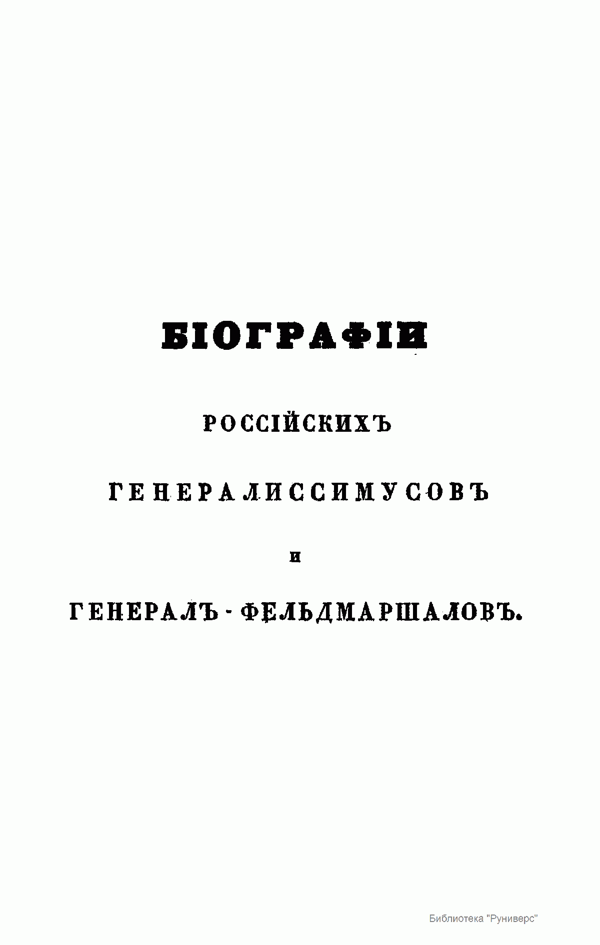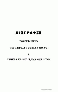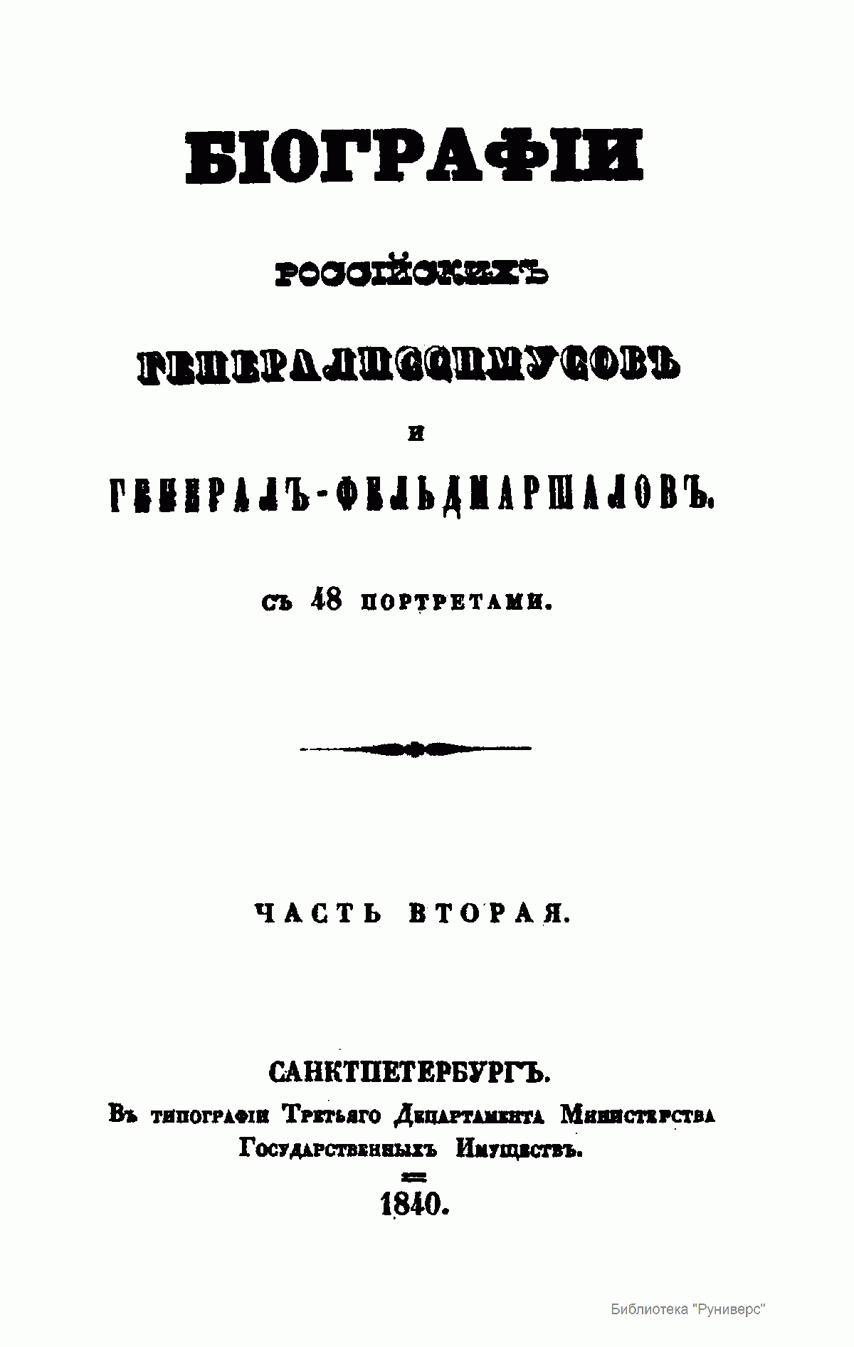 Бiографiи россiйскихъ генералиссимусовъ и генералъ-фельдмаршаловъ съ 48 портретами. Часть вторая