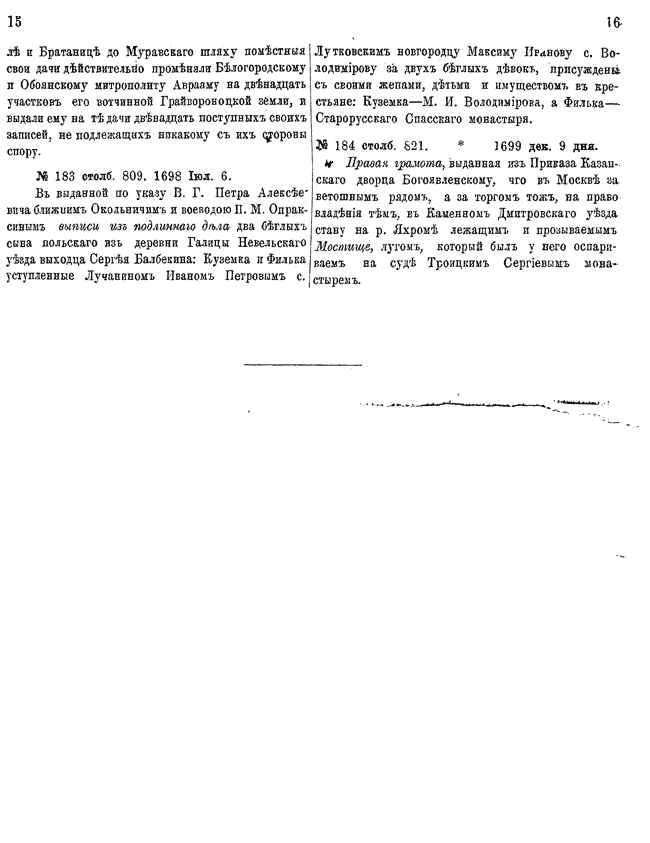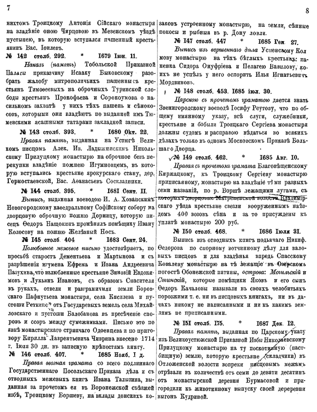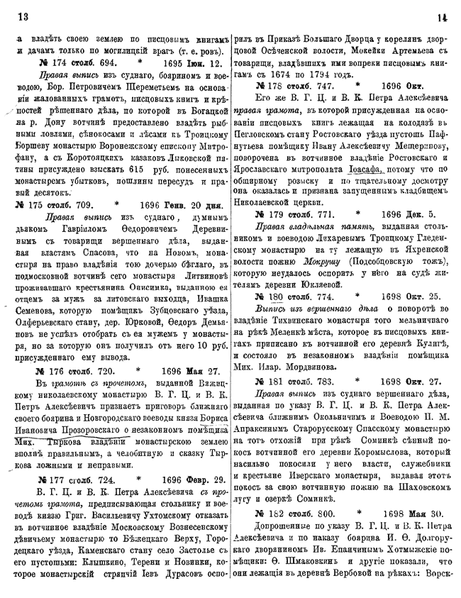 Указатели к 1-му тому актов