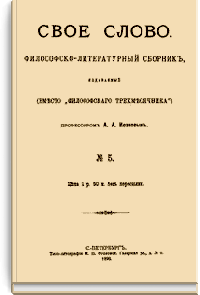 Сборник, который философ-спиритуалист А.А. Козлов - один из первых представителей персонализма в России, начал выпускать вместо выходившего ранее журнала «Философский трехмесячник». Как и предшествующее издание, « Свое слово» состоит исключительно из статей самого автора. В этих публикациях он в итоговой форме формулирует свои философские воззрения, в которых развивает концепцию панпсихизма.