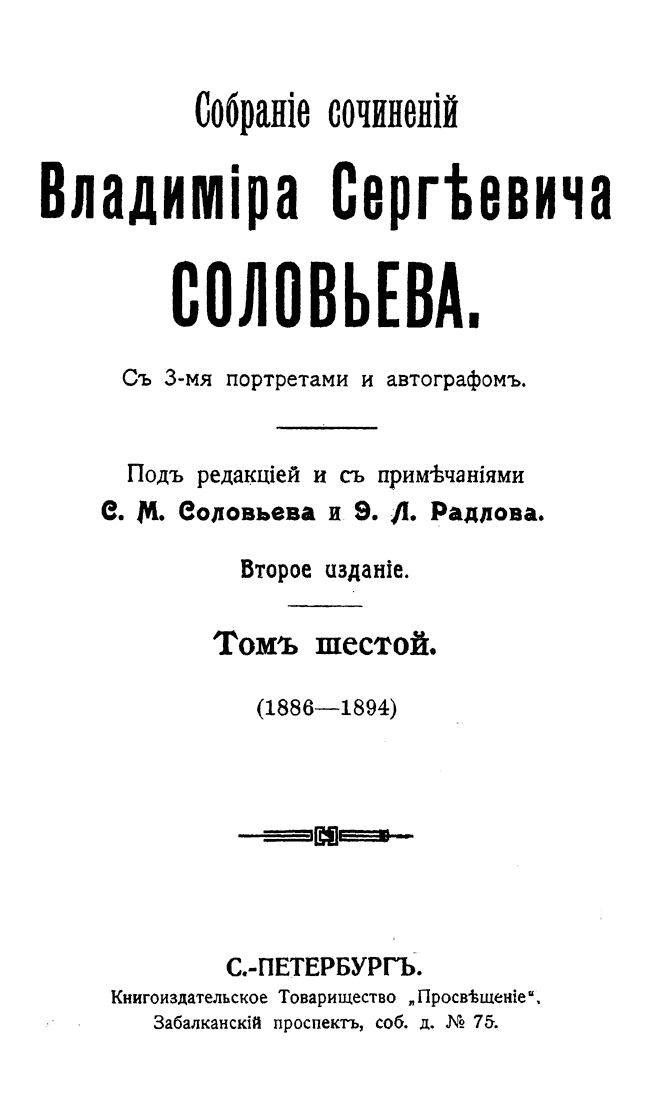 Собрание сочинений Владимира Сергеевича Соловьева. Том VI