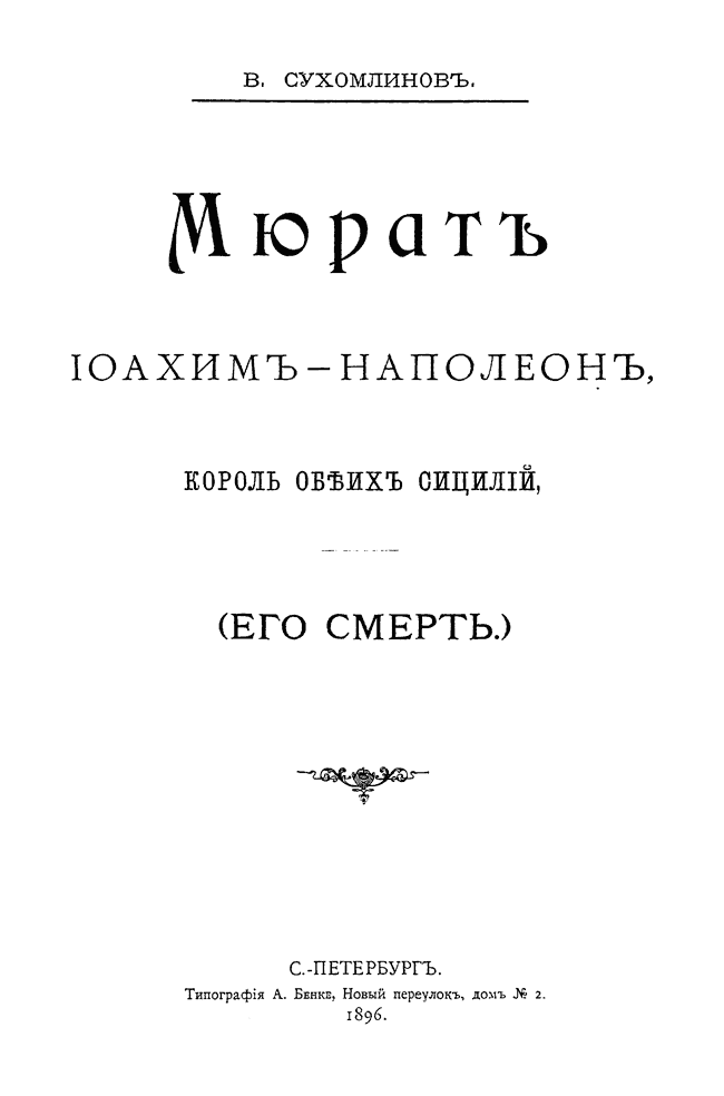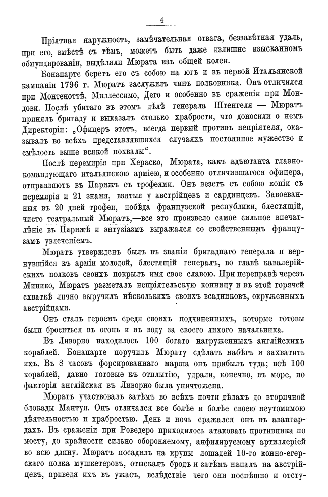 Небольшая брошюра – апологетическое описание жизни, доблестей и смерти знаменитого наполеоновского маршала. Ее автор к моменту издания – командир драгунского полка, затем – генерал, начальник Генерального штаба, а с марта 1909 по июнь 1915 года - военный министр России.