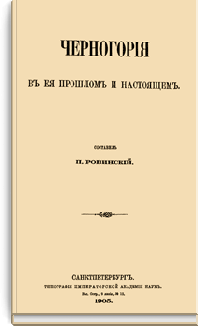 Черногория в ее прошлом и настоящем» - крупнейший вклад в науку известного русского ученого-слависта, этнографа и журналиста. П.А. Ровинский с 1879 по1906 с небольшими перерывами жил в Черногории, где сотрудничал в русской дипломатической миссии и изучал историю и этнографию страны. В своем капитальном труде он обобщает результаты своих многолетних исследований.