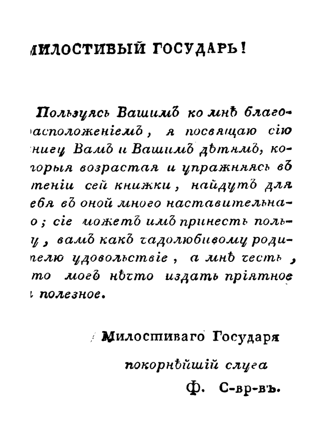 Книга относится к разряду нравоучительной литературы. В посвящении Н. С. Дубровину издатель пишет, что дети должны «найти для в оной много наставительного, сие может принести пользу».