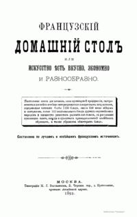 Французскiй домашнiй столъ или искусство ѣсть вкусно, экономно и разнообразно
