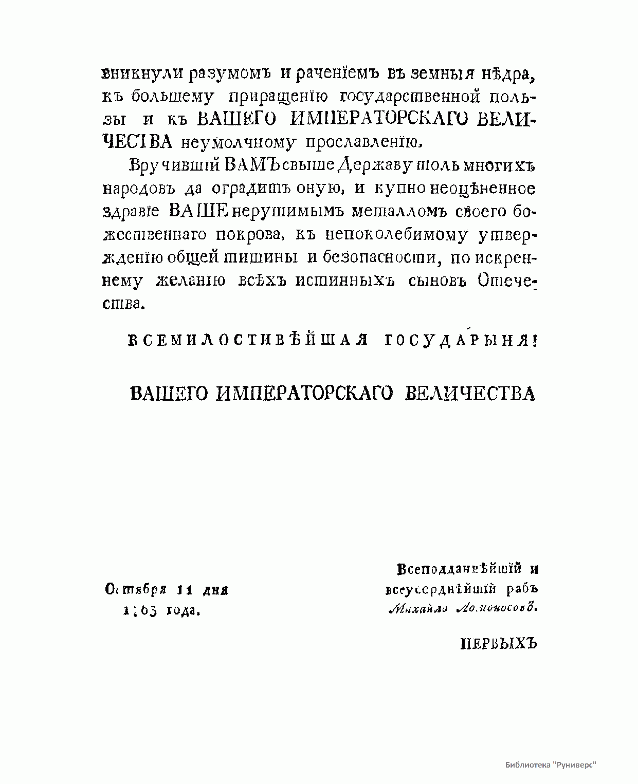 Письмо покойного Михаила Васильевича Ломоносова к Ивану Ивановичу Шувалову
