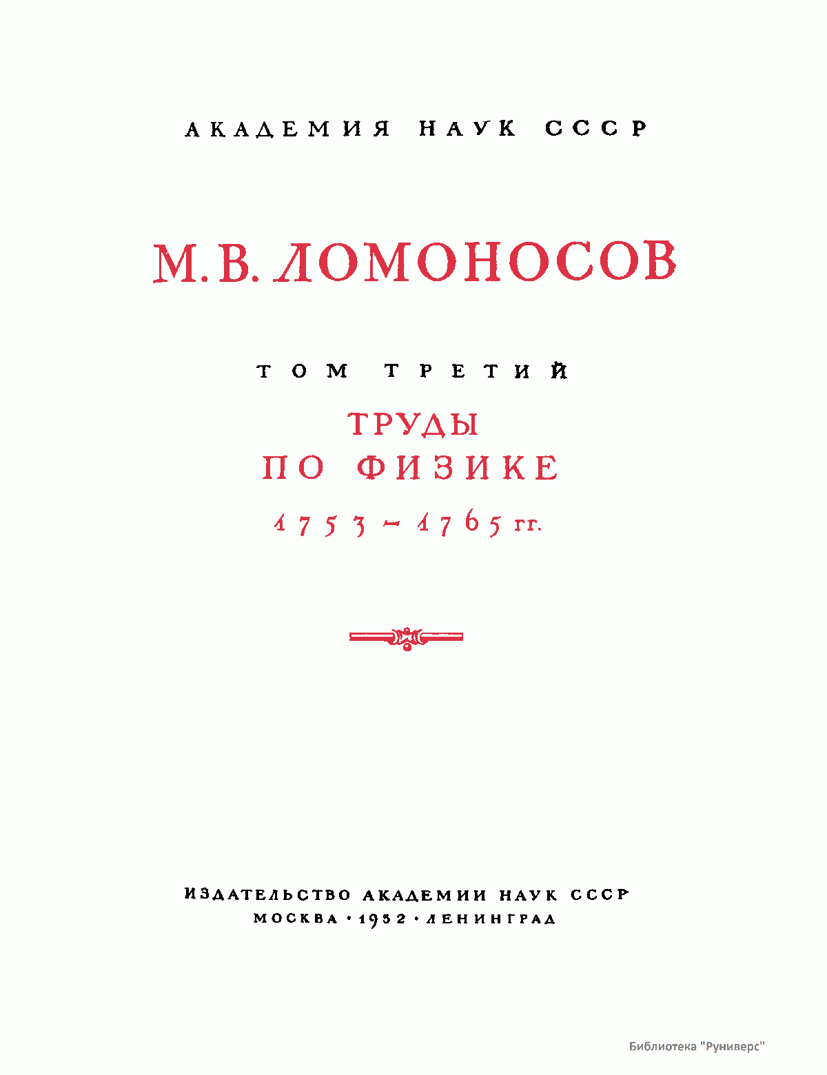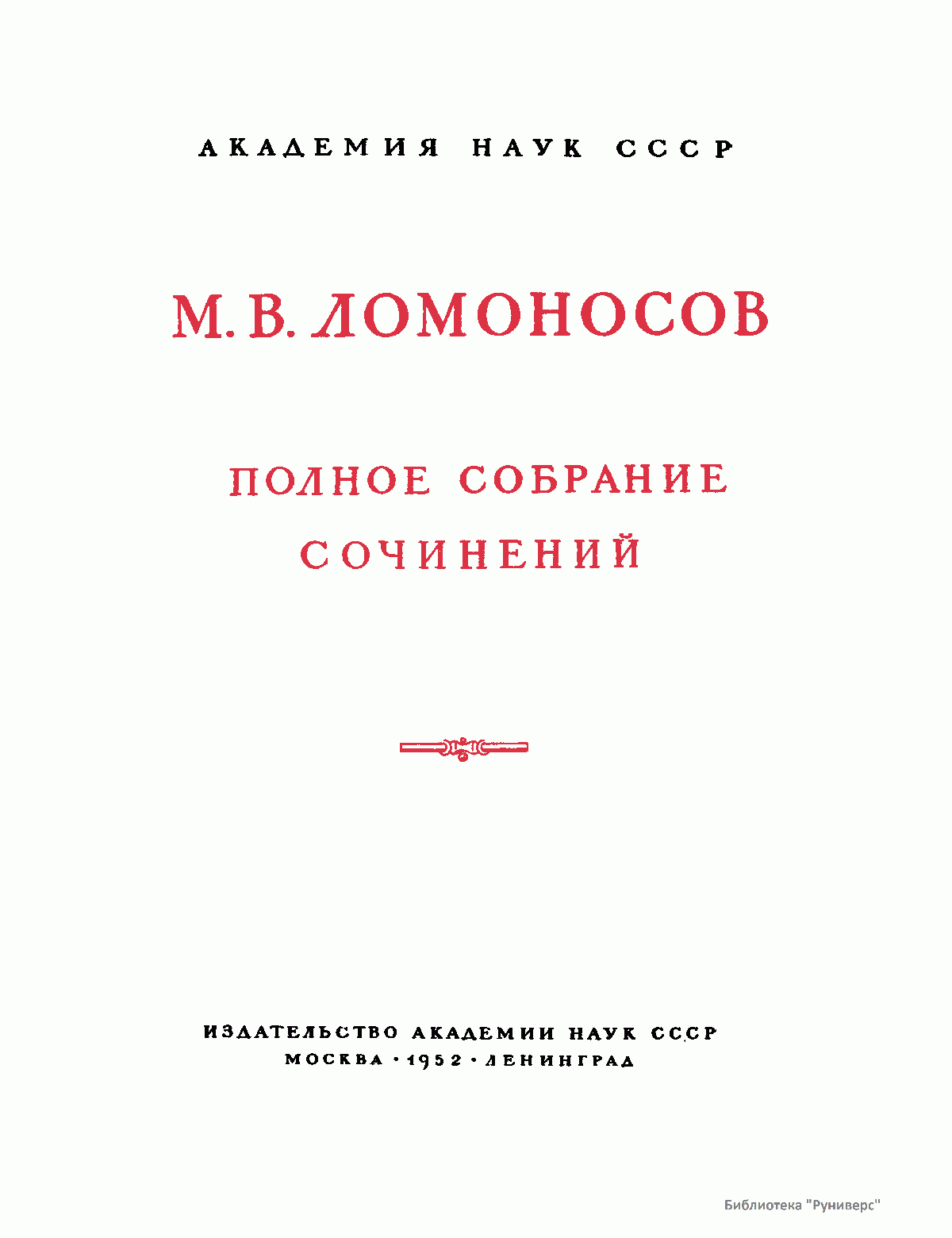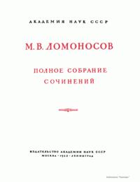Михаил Васильевич Ломоносов – человек необъятных дарований и научной энергии, величайшей деятель культуры XVIII века, лучший продолжатель идей петровского времени. Ломоносов работал в области всех известных в его время наук и почти в каждой сделал замечательные открытия. Он был философом, физиком, химиком, металлургом, географом, биологом, астрономом, филологом одновременно. В этом отношении Ломоносов был последним представителем фаланги великих людей, выдвинутых во всей Европе эпохой Возрождения, людей типа Леонардо да Винчи или Галилея. Белинский так писал о Ломоносове: «Ослепительно и прекрасно было это явление. Оно доказало собой, что человек есть человек во всяком состоянии и во всяком климате, что гений умеет торжествовать над всеми препятствиями, какие ни противопоставит ему враждебная судьба, что, наконец, русский способен ко всему великому и прекрасному». Настоящее издание сочинений Ломоносова наиболее полное из всех. Оно подготовлено на основе большой работы ученых по разысканию, описанию и изучению разнообразного и богатейшего научного наследия Ломоносова. В издание включается несколько сот документов, не вошедших в последнее академическое издание и ранее не опубликованных. В число этих документов входит ряд статей и заметок научного значения, автобиографически документы, переводы и разнообразные служебные бумаги, характеризующие Ломоносова как выдающегося организатора русской науки и просвещения XVIII века. Особо следует отметить документы, относящиеся к деятельности Ломоносова как ученого-экспериментатора. Все публикуемые тексты сверены с первоисточниками – рукописями и прижизненными изданиями. В отдельных случаях, когда ни рукописей, ни прижизненных изданий не сохранилось, текст печатается по наиболее достоверному, критически изученному источнику. Произведения печатаются по новой орфографии с заменой пунктуации Ломоносова современной пунктуацией, но с сохранением, по возможности, всех особенностей, присущих языку Ломоносова. Все тексты, написанные на латинском языке, печатаются одновременно на языке оригинала и в русском переводе. Произведения Ломоносова распределены по разделам его деятельности. Каждому разделу посвящен один том или несколько томов, в зависимости от объема материала. В пределах каждого тома произведения расположены хронологически по времени их написания или публикации. Некоторые отступления от этого принципа сделаны лишь в отдельных случаях, когда это вызывалось необходимостью сохранить органическую связь между однородными произведениями. В отличие от старых изданий сочинений Ломоносова, в которых при распределении материала сначала печатались художественные произведения и филологические труды, в настоящем издании первые тома посвящены научным трудам по физике, химии и другим естественным наукам. В конце каждого тома даются краткие примечания справочного характера к опубликованным в томе работам и указатель личных имен. Настоящее полное собрание сочинений Ломоносова осуществляется Главной редакцией издания при непосредственном участии Комиссии по истории Академии Наук СССР, архива Академии Наук СССР и приглашенных специалистов.