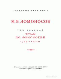 Полное собрание сочинений. Том седьмой. Труды по филологии 1739-1758 гг.
