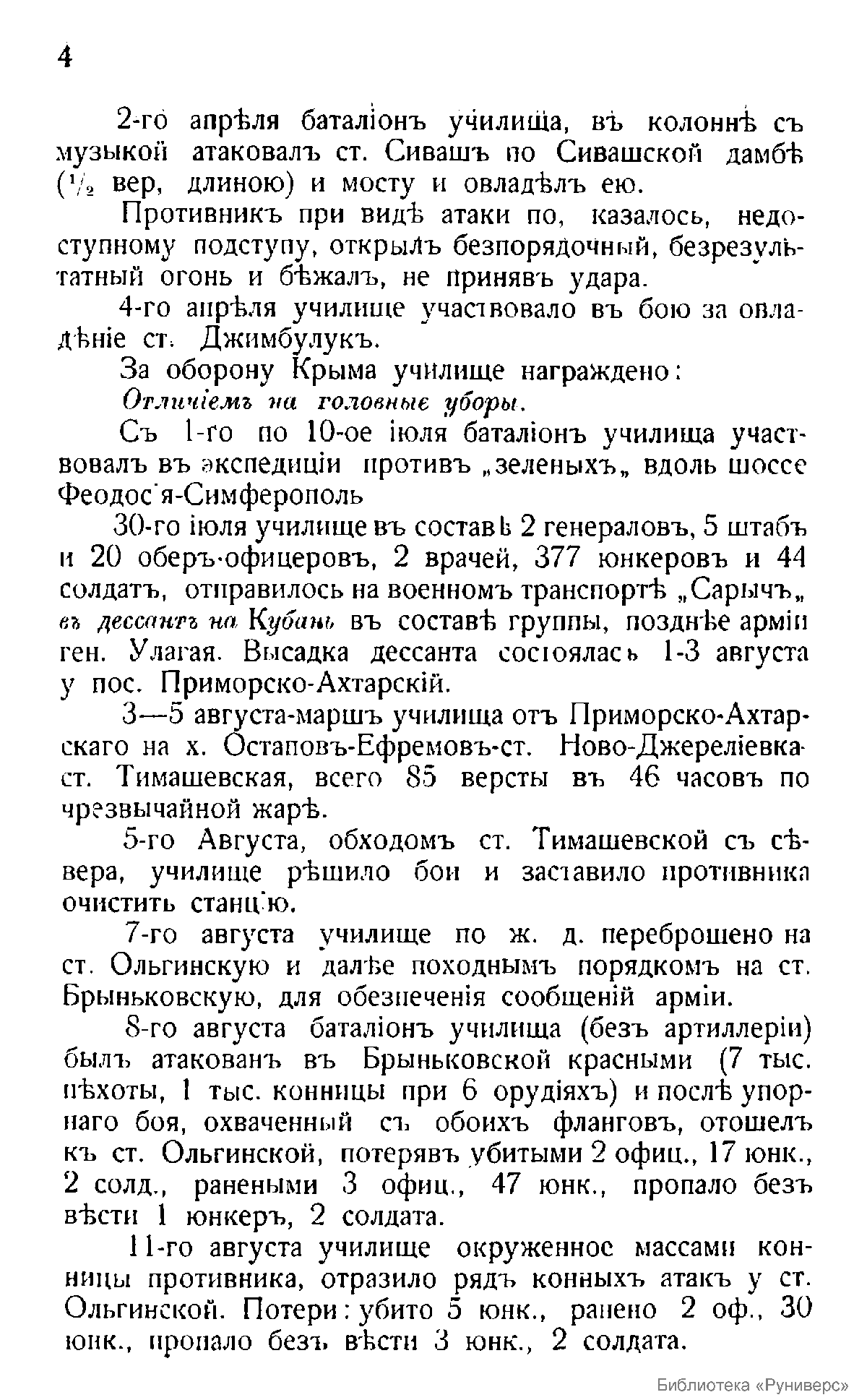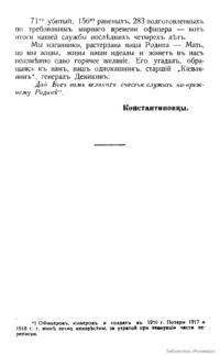 Брошюра представляет собой краткое учебное пособие для занятий с юнкерами, выпущенное в месте постоянной дислокации остатков сохранившихся частей Вооруженных Сил Юга России в изгнании на территории Болгарии. В предисловии указывается, что из всех военных училищ дореволюционной России только одно это военно-учебное заведение сохранилось до 1922 года, продолжая готовить офицерские кадры даже в условиях эмиграции. В пособии в форме хроники прослеживаются основные вехи истории Константиновского военного училища. Училище было основано в 1865 году как Киевское пехотное юнкерское училище. В 1897 году оно было преобразовано в Киевское военное училище для войсковых юнкеров и вольноопределяющихся с недостаточным образованием, Общее количество юнкеров насчитывало 400 чел. После начала Первой мировой войны – с 1 октября 1914 года состоялся последний выпуск юнкеров в чин подпоручика. В дальнейшем училище перешло к практике четырехмесячных ускоренных выпусков, его штат был увеличен до 630 юнкеров. В это время в Киеве было открыто еще 3 военных училища, поэтому в сентябре 1914 года училищу было присвоено наименование «1-го Киевского». После смерти великого князя Константина Константиновича в октябре 1915 года 1-е Киевское военное училище стало именоваться «Киевским великого князя Константина Константиновича военным училищем». После Октябрьских событий 1917 года 2 роты училища выступили против власти большевиков. Поэтому в ноябре 1917 года училище переместилось в Екатеринодар и полностью влилось в создаваемую Добровольческую армию, которую вскоре возглавил генерал А.И. Деникин, тоже бывший константиновец. Юнкера на протяжении трех лет кровопролитной «белой борьбы» принимали активное участие в Гражданской войне на Юге России, а в ноябре 1920 года ввиду полной эвакуации Крыма училище покинуло Родину. Последний – 69-й – выпуск училища состоялся уже в 1923 году в определенных властями Болгарии лагерях близ македонского селения Горная Джумая.