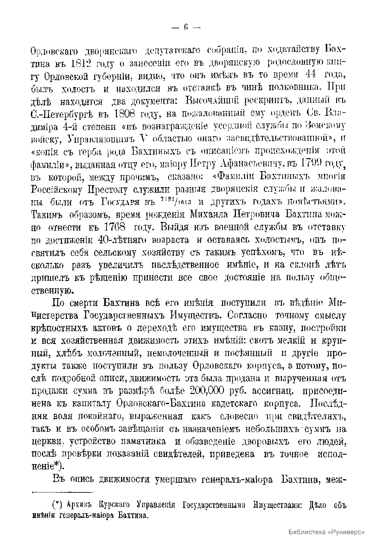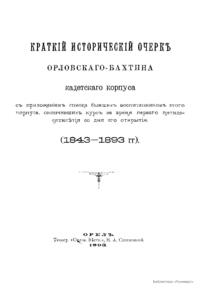 Краткiй историческiй очеркъ Орловскаго-Бахтина кадетскаго корпуса, съ приложенiемъ списка бывшихъ воспитанниковъ этого корпуса, окончившихъ курсъ за время перваго пятидесятилѣтiя со дня его открытiя. (1843-1893 гг.)