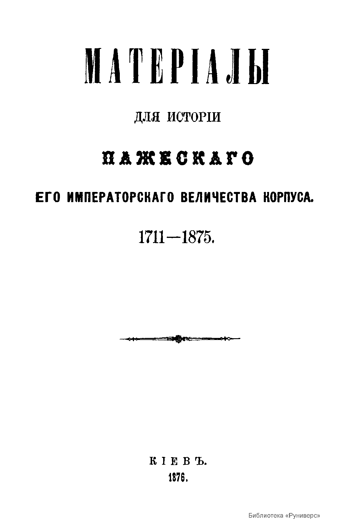 Матерiалы для исторiи пажескаго Его Императорскаго Величества корпуса. 1711-1875